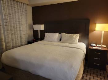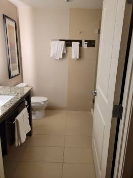 Stayed at this location for an overnight layover. Very, very close to the hotel. More space than what I needed for an overnight stay, but was comfortable with satisfactory breakfast options. My only complaint is that the foot stool looked disgusting, but thankfully I didn't need it. Kitchen was fully equipped.