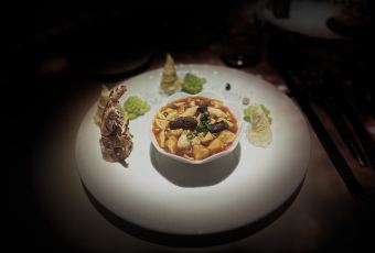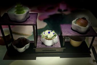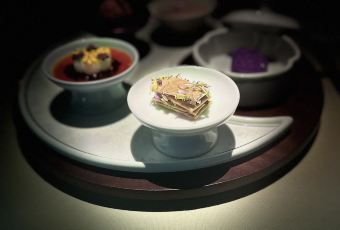 解构经典 以现代技艺,重塑经典风味。单是一道江南四小蝶,从茭白雕刻玉兰苞起步,经过花苞、花瓣、桥梁等形态,最终用莴笋雕成玲珑宝塔;器皿同样考究,从形制到材质,皆为衬托食材的渊源与本味而定,方寸之间,皆是匠心