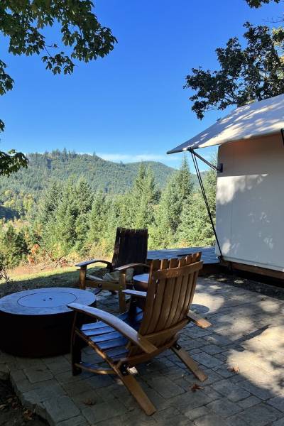 Amico Farm cozy wine country all weather Vista Tent with stunning views
