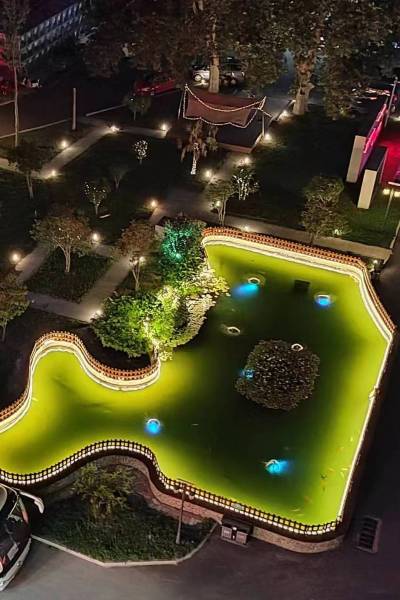 晚上院内灯光布置很温馨