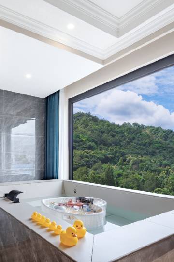 可看山景超清落地窗遇上定制药浴私汤