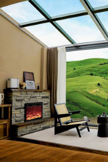 “神山为邻,一窗尽揽理塘全景”