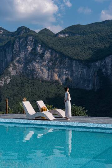 拥峡谷观景露台享山风配露天泳池消暑