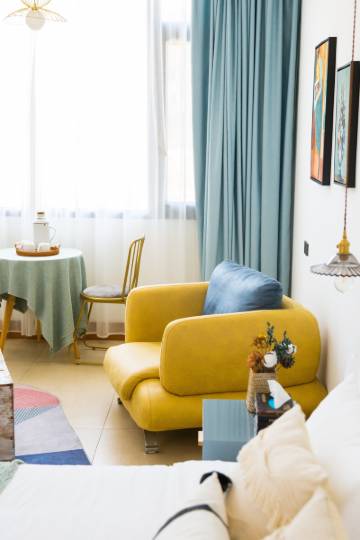 房间阳台有个秋千摇椅,风景很美