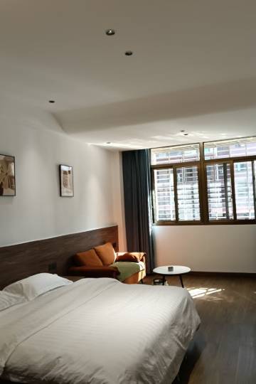 大床房宽敞舒适,床品柔软亲肤