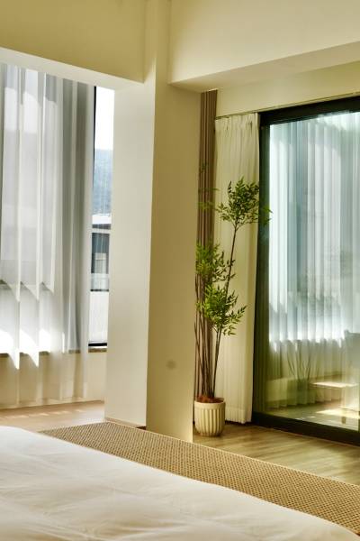房间有超大落地窗和阳台